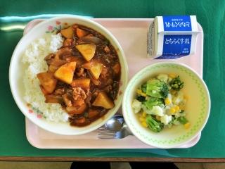 ・今日のメニューは、ハヤシライス、牛乳、花やさいサラダ