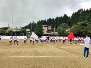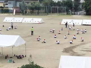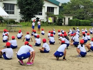 今日から運動会の練習が本格的に始まりました。朝の涼しいうちに全体練習です。