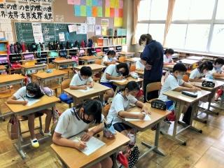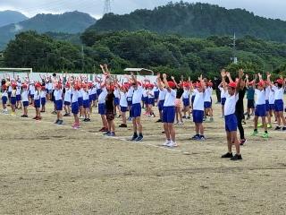 ・雨のため全体練習は教室でラジオ体操 3年 2年