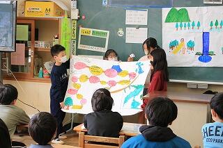 先日は、3年生が2年生に向けて総合的な学習の成果を発表しました。今回は、4年生が3年生に向けて1年間学習した「ひとにやさしいまちづくり」についてロイロノートにまとめて紹介しました。