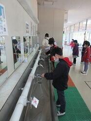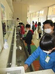 学校内の全ての水道がレバー式に変わりました。改めて水道の使い方を確認しました。密にならないように一つおきに使うことは変わりません。