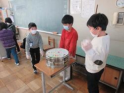 3年生の授業を紹介します。「音が出ているときの楽器のひみつをさぐろう」というめあての学習です。物から音が出るときは物が震えていること、音の大きさが変わるときは物の震え方が変わることを体感しました。