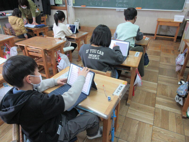3年生、4年生は国語の時間です。集中して取り組んでいました。