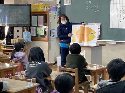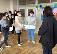 今年度最終の読み聞かせの日です。新型コロナウイルス感染症拡大防止のために予定していた活動もままならない中、ご協力いただいたボランティアの皆様、本当にありがとうございます。感謝の気持ちを込めて、児童作成のカードと鉢植えをプレゼントさせていただきました。