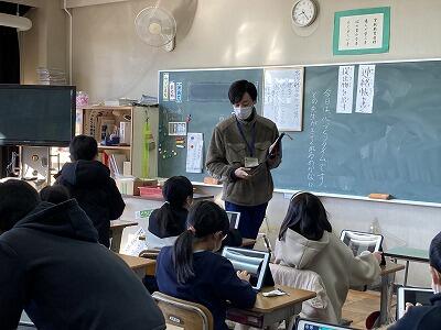 担任以外の教員が、それぞれの体験や思いを話したり、読み聞かせを行ったりします。