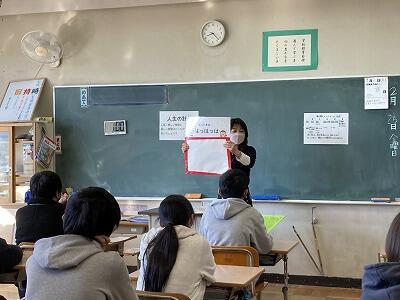 ふわふわ言葉、チクチク言葉について考えました。相手がどんな気持ちになるのか想像することが大切ですね。