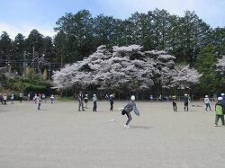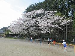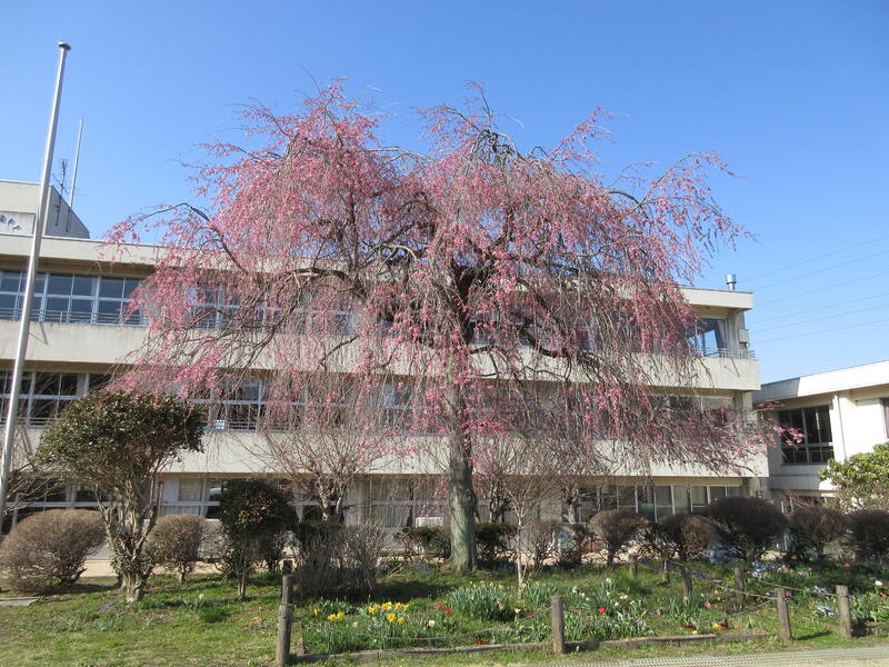 本校のシンボル校庭のしだれ桜も八分咲きとなりました。