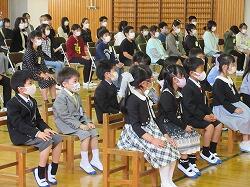 3月18日、卒業式を実施いたしました。新型コロナウイルス感染症拡大防止のため、参加者は、卒業生、卒業生のご家族1~2名、PTA会長、在校生代表5年生と教職員のみです。1~4年生は教室でオンライン配信を視聴しました。