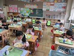 給食もよい姿勢で黙食です。
