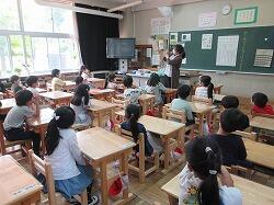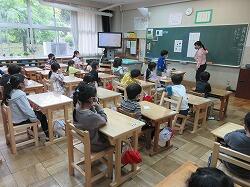 総合的な学習の時間に、栃木県の国際化交流員である、メグ先生をお呼びしてアメリカの自然や文化についての講話をしていただきました。メグ先生は、日本語が上手でとてもわかりやすく、アメリカのことについて説明してくださいました。6年生は、驚いたり、クイズに答えたり質問したりと活発に学習することができました。もっといろいろなことを聞きたかったくらいです。今後の学習に生かせるよい経験となりました。