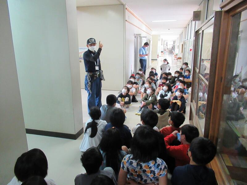 今回は、初めに消防署の方に防火扉や非常灯についてのお話を聞きました。実際に火事になった時にどこへ逃げたらよいかや、防火扉が閉まった際の避難の仕方などについて、よく知ることができました。そして、実際に防火扉を通っての避難を経験しました。防火扉が閉まった様子を見るのも初めてで緊張しましたが、落ち着いてしっかり避難ができました。