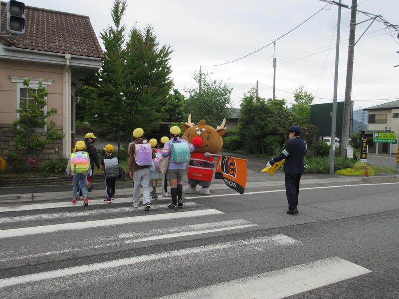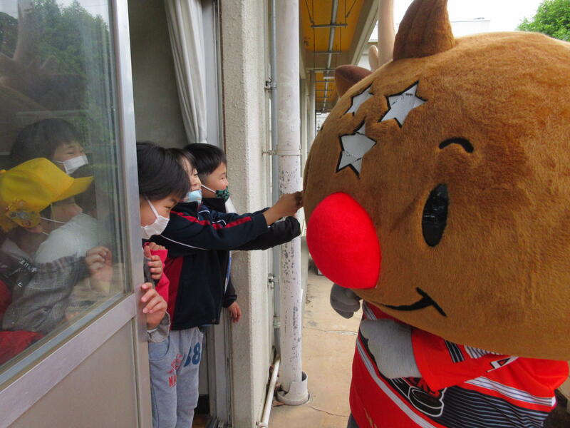5月16日の登校時にH.C.栃木日光アイスバックスの「しかっち見守り隊」が、文挾交差点で横断の見守り活動に来てくださいました。アイスバックスは、地域貢献活動の一環として子供たちの登校を見守り、交通安全の啓発・子供犯罪防止活動を行っています。突然現れた「しかっち」とスタッフの方に、子供たちは驚いたり喜んだりしていました。朝早い時間から児童の見守りのために来てくださったアイスバックスの皆さま、大変ありがとうございました。