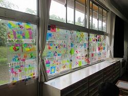 2年生の窓辺にも、1年生のホールにも図工の作品がありました。