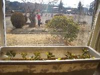 職員室窓下に2つ残していたヒイラギモクセイ挿し木のプランターを室内に取り込みました。立春を過ぎてから寒い日が続いています。本日の気温は午前7時半氷点下6度(校庭)です。