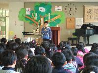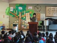 その後の朝会では、学びの「チャレンジ」として、4~6年生の家庭学習での工夫した取り組みが紹介され、自分で工夫して学ぶ楽しさや頑張りの成果が少しずつ出てきていると校長先生からお話をいただきました。