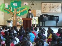 12月4日(木)お話グループ「ひいらぎ」のみなさんによる、全学年読み聞かせの朝です。