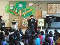 5年生は総合学習で、学区内の高齢者施設を訪問してきました。紙芝居、手品、クイズ、歌など、お年寄りに喜んでもらえるようにと考えてきた出し物を発表し、その後、ふれ合いの時間に、肩もみをしてさしあげました。お年寄りのみなさんにとても喜んでいただき、子どもたちはうれしそうでした。