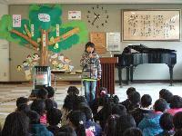 校長先生を観客に、役者ぞろいの6年生は、楽しく発表してくれました。