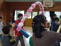週が明けて9日(月)には、今度は在校生が主催の「卒業を祝う会」が行われました。これまで学校を引っ張ってきた6年生へのおもてなしの会です。一年間ともに過ごしたひいらぎグループ(たてわり班)を中心に、4つのゲームを楽しみ、最後に在校生からのメッセージのプレゼントが贈られました。
