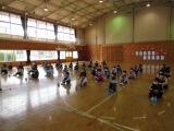 落合西小学校では、全学年同じ時間に実施します。2学年ずつペアのグループになって各種目を回ります。まずは、整列してメンバーを確認します。