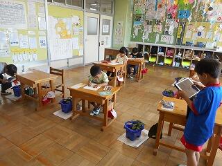 毎年行われる学力テストの特徴として,とにかく読む文量がとても多いことがあります。速読の練習として,「早口音読」,「指を使ってしっかりたどりながら読む」,「文節を意識して読む」,「時間を計る」などを行っています。