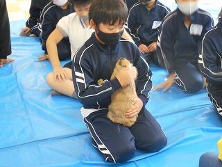 避難訓練(火災)とスクールガードの皆様との顔合わせ、そして、マッスルザウルス