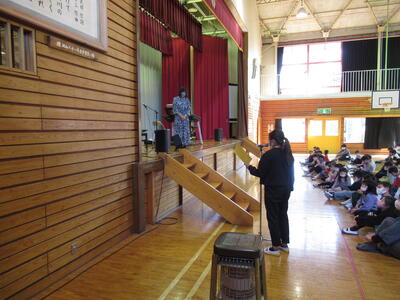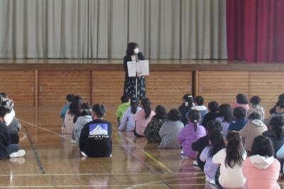 1~4年生の読み聞かせは、わくわくしたりどきどきしたりするお話でした。