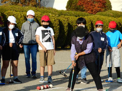 オープニングセレモニーが終わると、「ひいらぎグループ」ごとにゲームを楽しみます。ゲームの準備・運営は、5年生が行います。ゲームは全部で6種類あります。