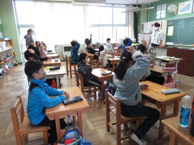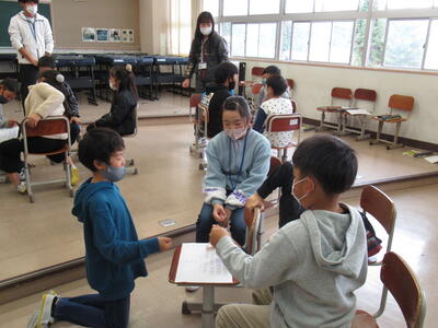 45分の授業を通して、子どもたちは静かでした。なぜなら、講師の方の目をしっかり見ながら、覚えた手話を使ったり、文字を指で書いたりすれば、コミュニケーションがとれるからです。子どもたちは真剣に、講師の方の動きを見て何を伝えたいのか理解しようとしたり、自分の伝えたいことを伝えるために、手話や指で文字を書く動作をしたりしました。