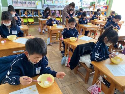 2色の絵の具を混ぜ、どんな色になるか想像したり、水の量を加減して濃さを考えたりしました。