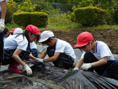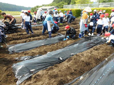 苗を植える前から今日まで、畑の耕し、つる返し、つる切りなど子供たちの目に見えないところでもたくさんの方に協力していただきました。感謝しながら食べましょう。