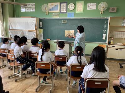 上級生が読み聞かせをしてくれるということで、どの子も真剣に聞いていました。