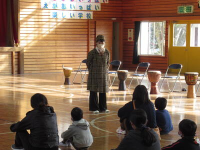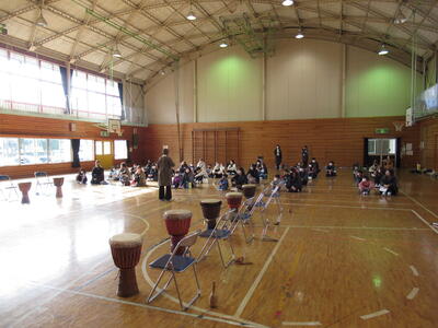 はじめに、アフリカの太鼓のお話を聞きました。やぎの皮を使って作られており、命をいただいて作ったものなので、大切に使うのだという話が印象的でした。