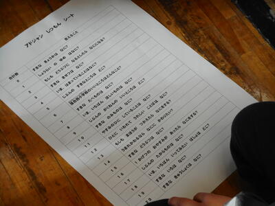 最後は、「アドジャン」です。3~4人のメンバーで0~5本の指を同時に出して、その合計数と同じ番号の質問に答えていきます。