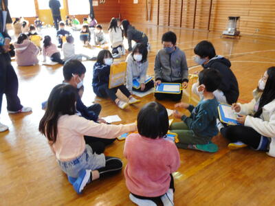 上級生が上手にリードしている姿、下級生の協力して活動している姿、相手の話をしっかり聞こうとしている姿など、すてきな場面がたくさん見られた「なかよし集会」でした。この後も、引き続き、「なかよしカード」で自分の一日を振り返ったり、朝や帰りの会での「かがやきNo1」で、友だちのやさしい行動や親切を紹介し合ったりする中で、誰とでも仲良くし、自分も相手も大切にしようとする心情や実践力が育っていくことを願っています。