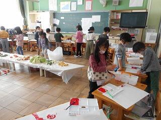 「お花畑にしたい。」「海の中にしたい。」「虫や森の中の様子を作りたい。」など、自分の好きなイメージに近づけるために、野菜を選び、向きを考え、様々な工夫を凝らしていました。