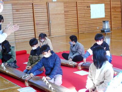 普段はなかなか触れられない、和楽器に親しむ時間となりました。帰り際、和久先生が、子どもたちが丁寧にしっかりと音を取って取り組むので、とてもきれいな音色で演奏できていたと誉めてくださいました。