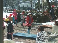 今回は、「片足ケンケンバージョンのしっぽとりゲーム」「新聞でつくったボールの受け渡し競争」そして「新聞紙のそり競争」などたくさんの活動をし、時間が過ぎるのがあっという間に感じられました。