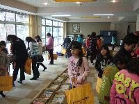 生活科「お正月の遊び」の体験が行われました。子どもたちは、凧揚げ、はねつき、めんこ、お手玉、あやとり、コマ、けん玉、おはじきの8つの遊びを、1・2年生の祖父母の方々や、ボランティアティーチャーの方々の指導のもとに、体験しました。時間も短く、上手にはなれないまま終わってしまう体験もありましたが、熱心な指導の下、充実した時間を過ごすことができました。ご指導に来て下さった方々、大変ありがとうございました。