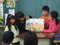 5年生教室では、この日2年生のメンバーが来てくれて、読み聞かせをしてくれました。まるで学習発表会のように暗唱して発表してくれる人、気持ちをこめて読み上げる人、そして息を合わせて発表する面々。