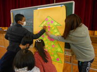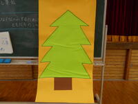 みんなで考えた言葉のカードで、ツリーを飾ります。最初は、さびしいもみの木でしたが・・・。