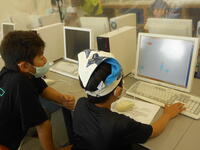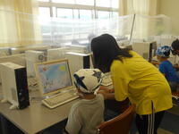 今日は、1年生が招待されました。昼休みにみんなわくわくしながら、パソコン室にやってきました。
