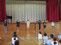 その後、みんなでなわとび、アスレチック運動、ペアで棒立てなどを行いました。1年生にとっては、初めての運動も多かったですが、2、3年生をお手本に、楽しく上手に行うことができました。