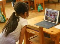 お友だちの顔が一斉に映り、お話もできるので、みんな大喜びです。あっという間に、いろいろな使い方を覚えていました。