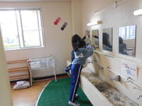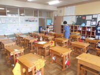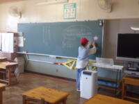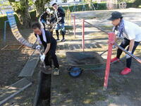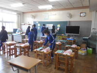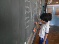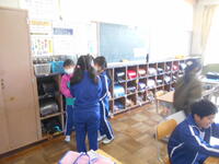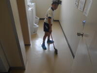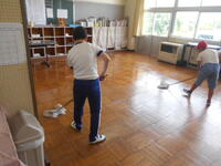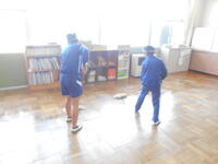 玄関、トイレ、校庭、体育館などをきれいにします。