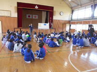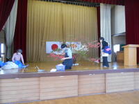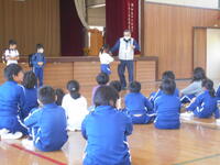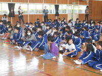 3年、6年音楽、和太鼓の講師が来て演奏の仕方や和太鼓の仕組みなどを教えてくれました。