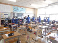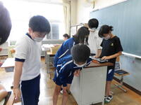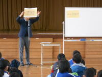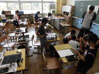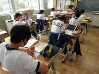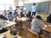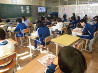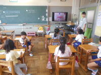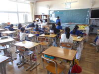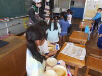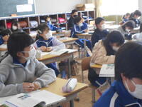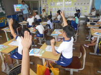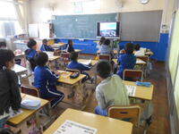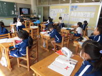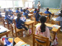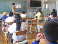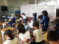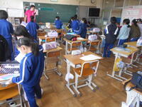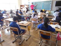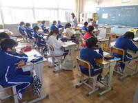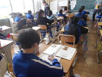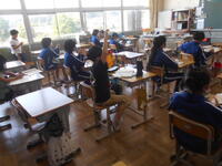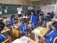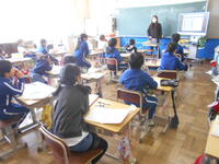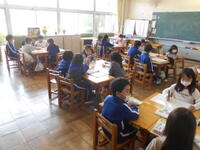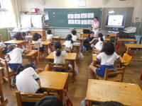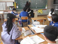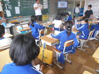 5年社会、輪中の人のくらしについて考えます。研究授業で、市教委から指導担当者が参観しています。
