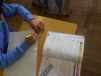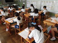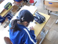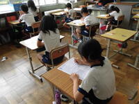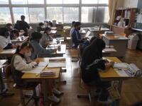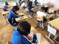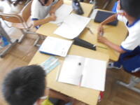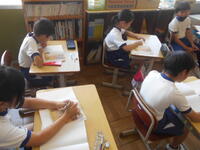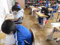 3年国語、漢字のミニテストをしました。直してからノートに貼ります。