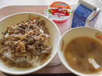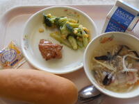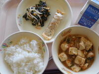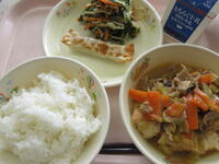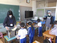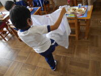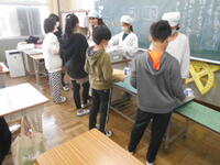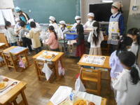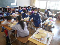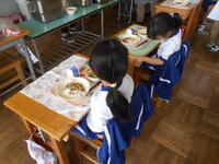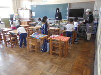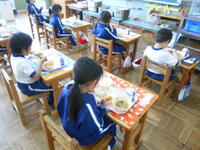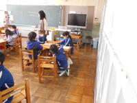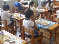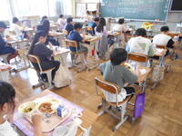 1年学活、食事のとき、よいマナーで食べることができるようにします。