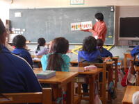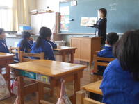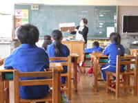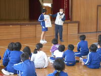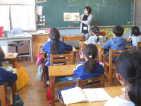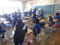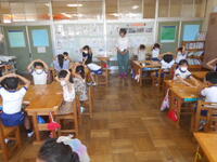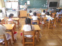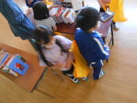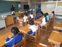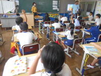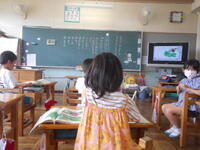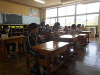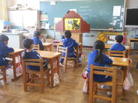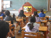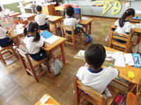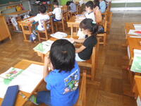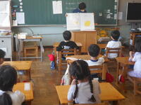 1年国語、「おおきなかぶ」のお話を聞きます。